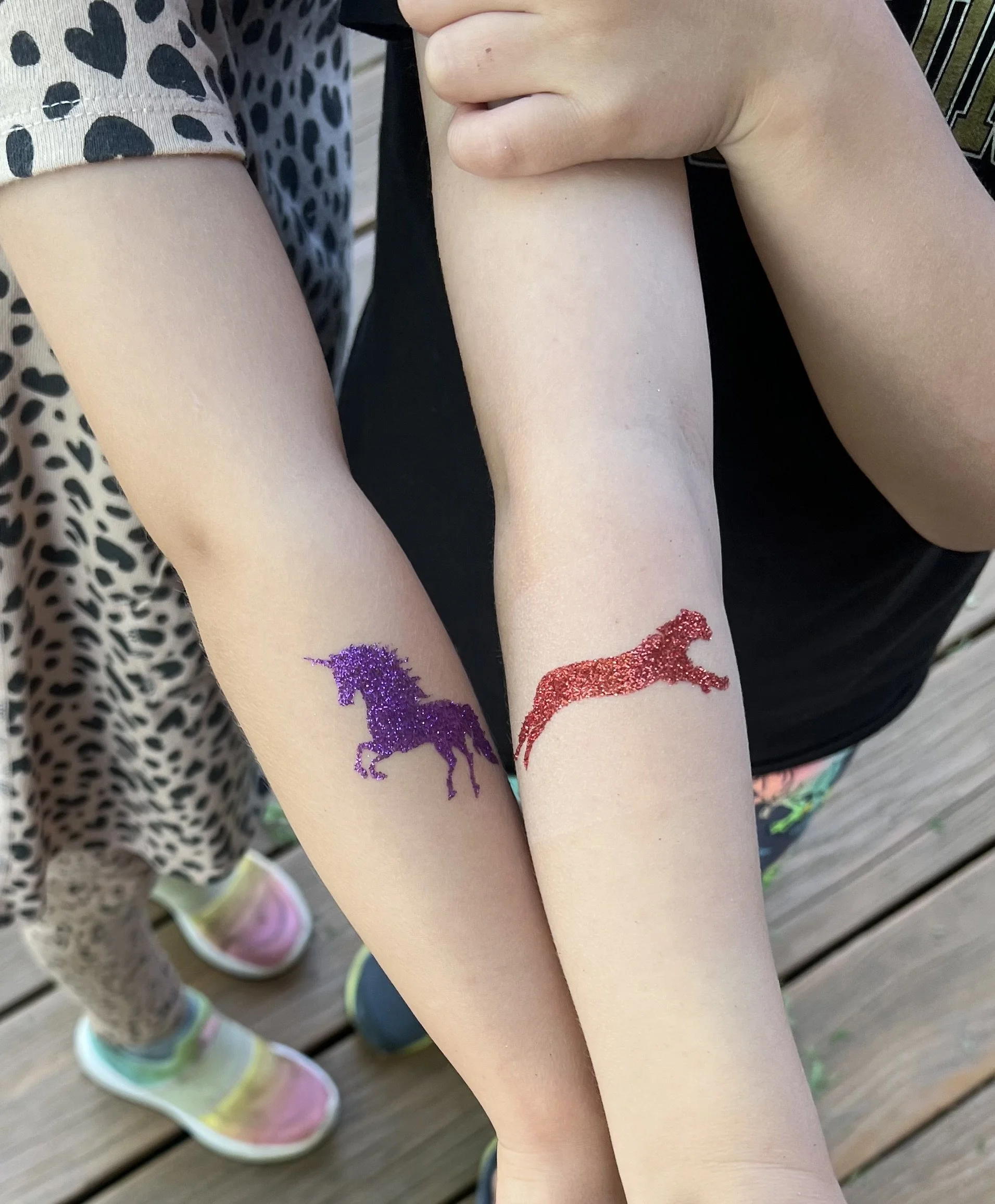 At Sparkle Magic Party Tats, we bring sparkle to your celebrations in the Denver area! Whether you’re hosting a whimsical birthday bash, a magical wedding, or a fun-filled corporate event with custom logo designs, our glitter tattoo services will dazzle your guests. Book with us today and let the glitter shine!